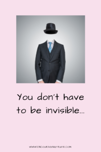 I’m sharing this because I don’t think that I’m the only one who feels this way. There are others who struggle with the invisible woman syndrome.