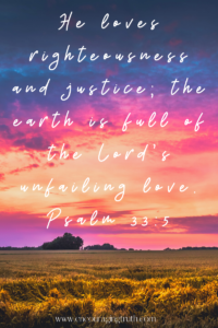 God’s love is unfailing. “He loves righteousness and justice; the earth is full of the Lord’s unfailing love” (Psalm 33:5). God’s love is faithful, merciful, kind, and loyal. God’s love doesn’t let us down or disappoint us. His love is good and pure. When others forget us, God remembers us. When others don’t love us, God always loves. When others don’t listen, God always hears us. When others ignore us, God always sees us. When others abandon us, God never leaves nor forsakes us. When others are unfaithful, God is always faithful. When others aren’t trustworthy, God is always faithful and true.